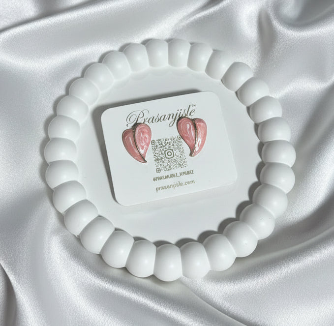 These elegant blush pink heart stud earrings are the perfect blend of sweet and chic. Each delicate heart features a subtle swirl design, beautifully outlined in a polished gold-tone trim. Lightweight and comfortable for all-day wear, they add a romantic touch to any outfit, from casual day looks to evening attire. An ideal gift for a loved one, or a beautiful treat for yourself!